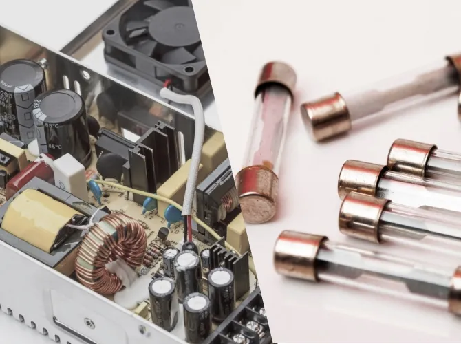 スイッチング電源とヒューズを搭載し、過電流や雷などの異常電流から機器を保護します。